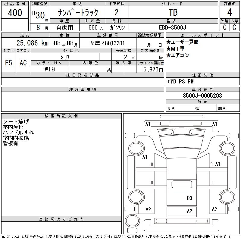 SUBARU SAMBAR TRUCK TB - лот 400