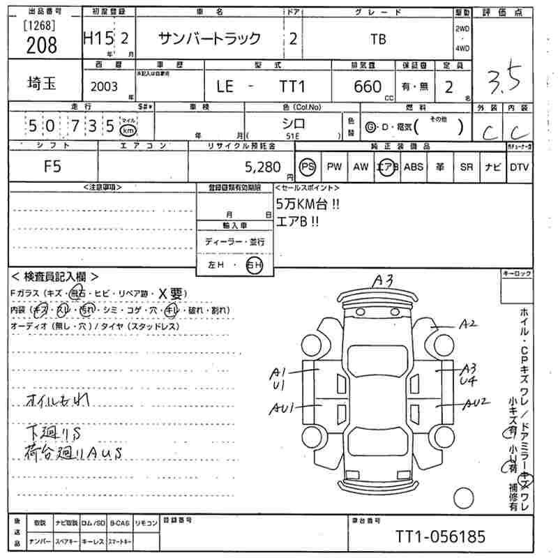 SUBARU SAMBAR TRUCK TB - лот 208