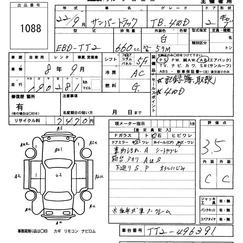 SUBARU SAMBAR TRUCK TB 4WD - лот 1088