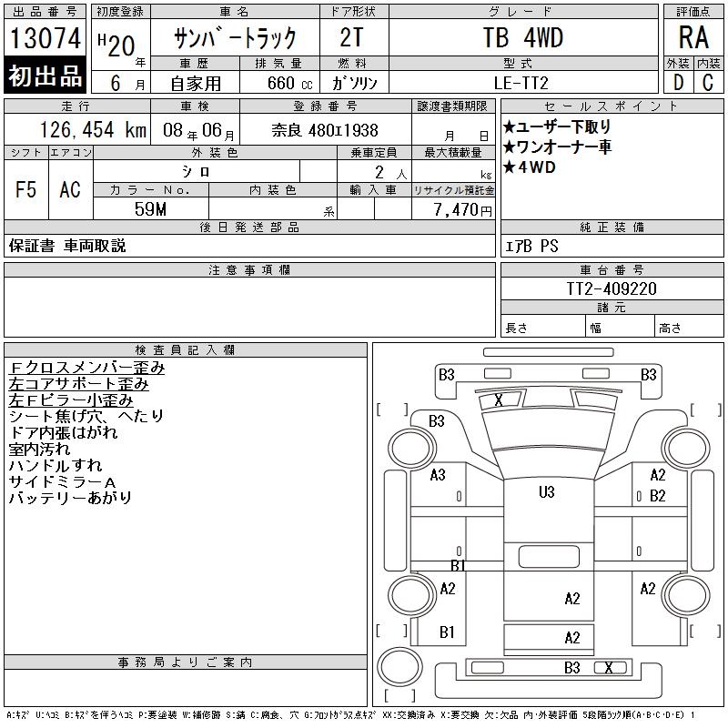 SUBARU SAMBAR TRUCK TB 4WD - лот 13074