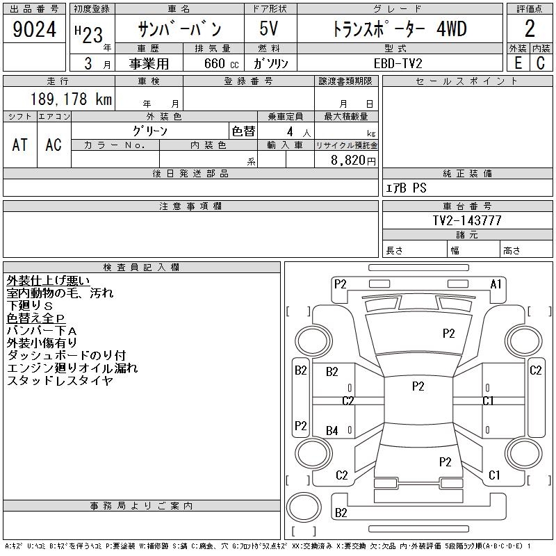 SUBARU SAMBAR VAN TRANSPORTER 4WD - лот 9024