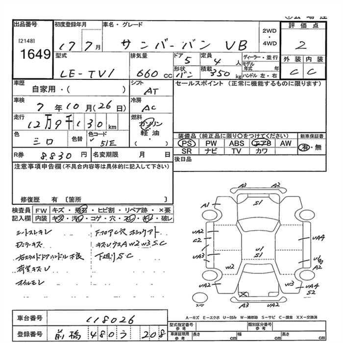 SUBARU SAMBAR VAN VB - лот 1649