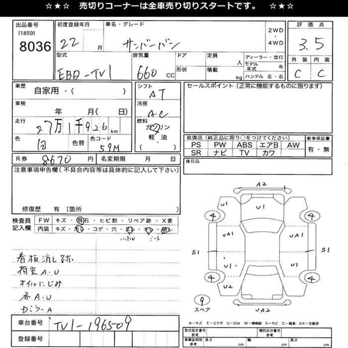 SUBARU SAMBAR VAN - лот 8036