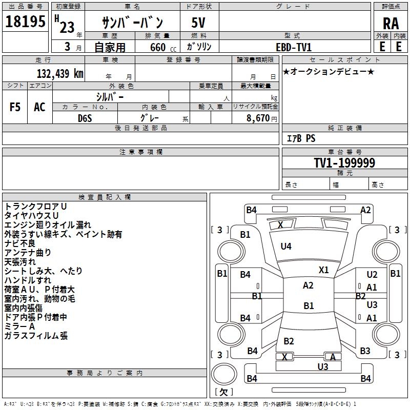 SUBARU SAMBAR VAN - лот 18195