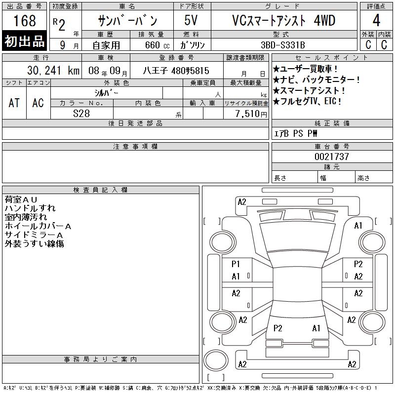 SUBARU SAMBAR VAN VC SMART ASSIST 4WD - лот 168