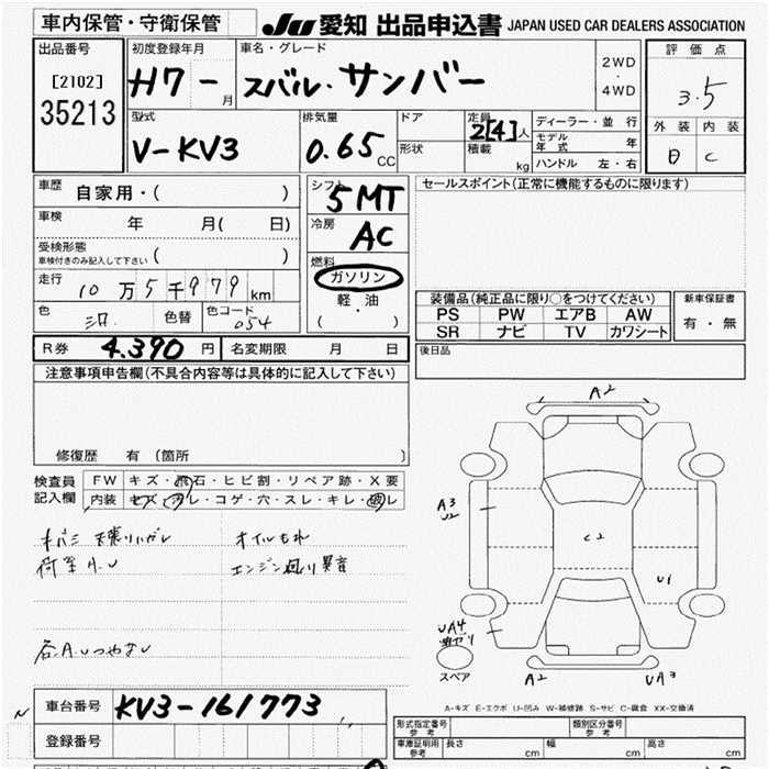 SUBARU SAMBAR VAN - лот 35213