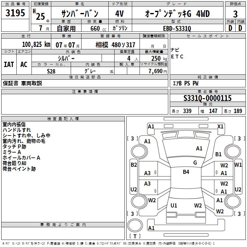 SUBARU SAMBAR VAN OPEN DECK G 4WD - лот 3195