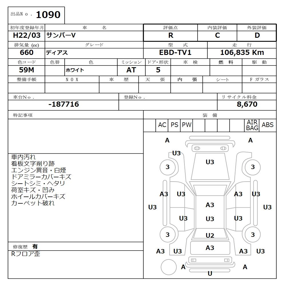 SUBARU SAMBAR VAN DIAS - лот 1090