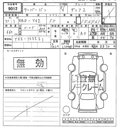 SUBARU SAMBAR VAN 4WD DIAS - лот 9012