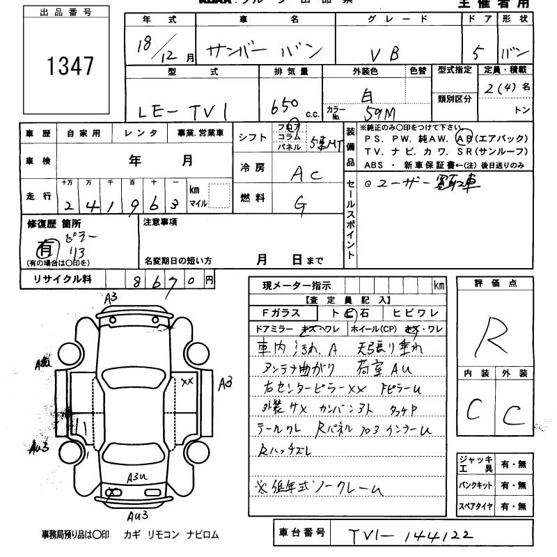 SUBARU SAMBAR VAN VB - лот 1347