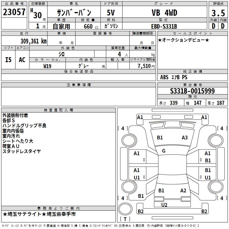 SUBARU SAMBAR VAN VB 4WD - лот 23057