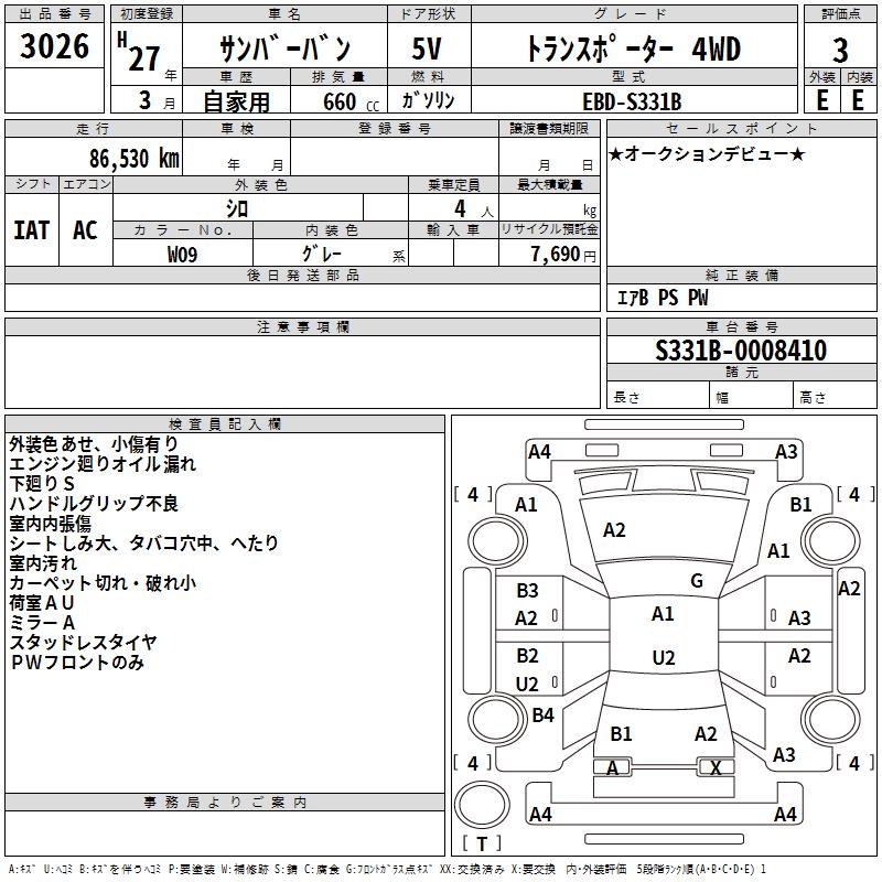SUBARU SAMBAR VAN TRANSPORTER 4WD - лот 3026