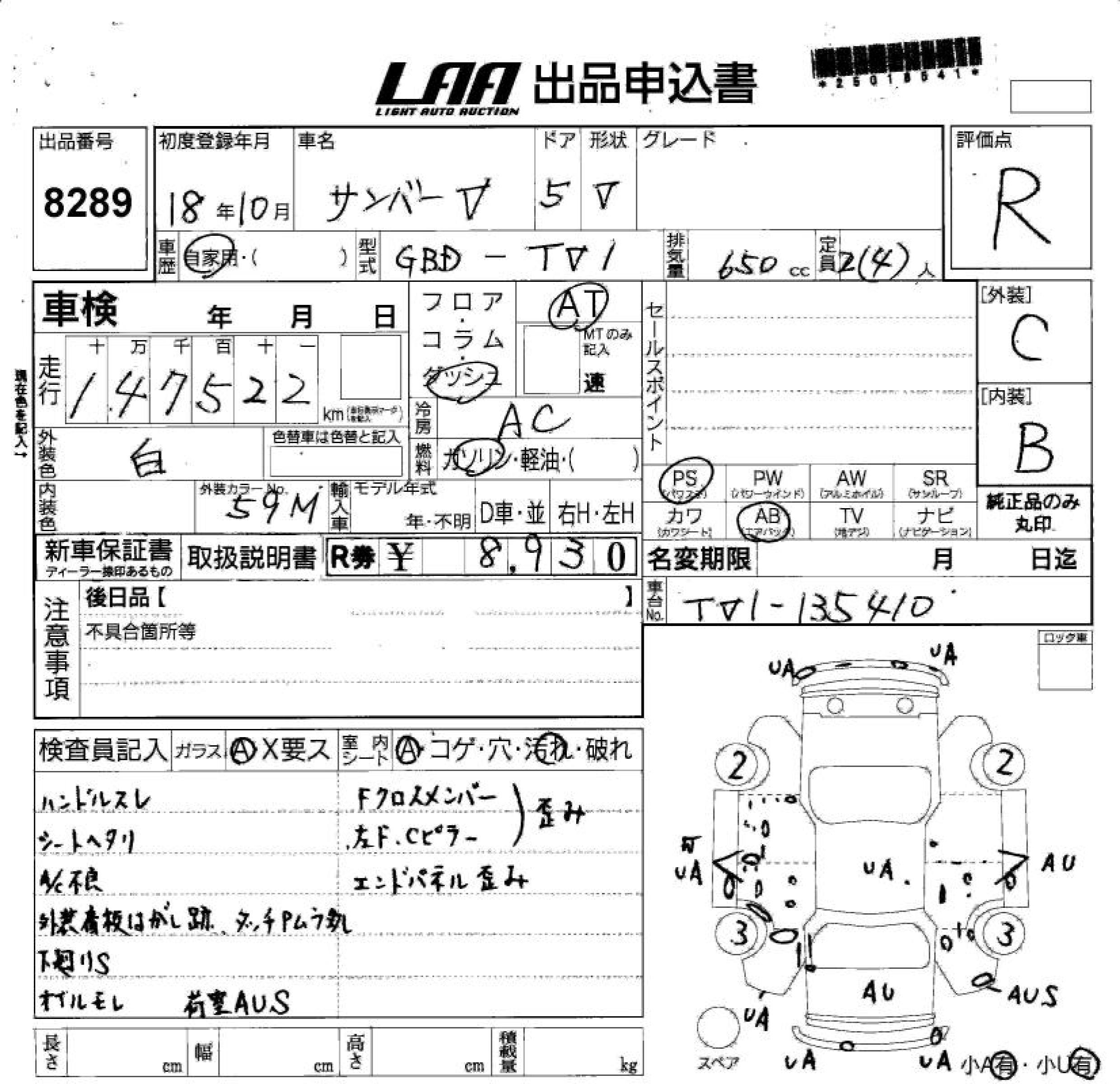 SUBARU SAMBAR VAN - лот 8289