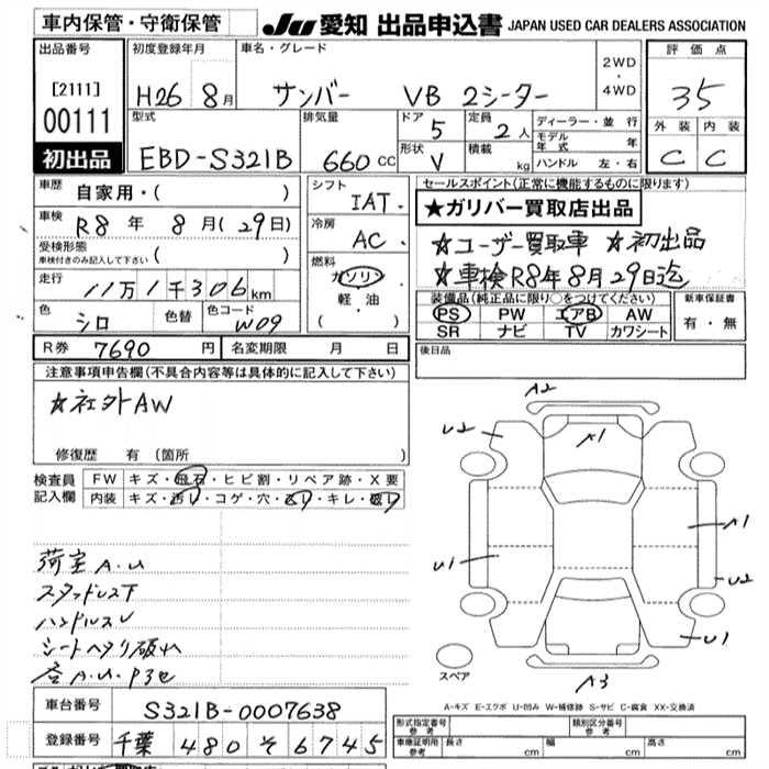 SUBARU SAMBAR VAN VB 2 -SEATER - лот 111