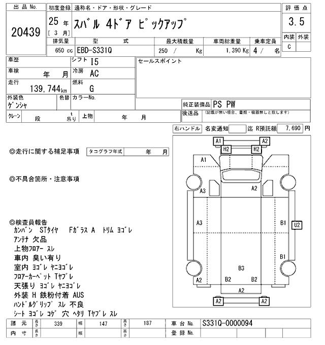SUBARU SAMBAR VAN PICKUP - лот 20439