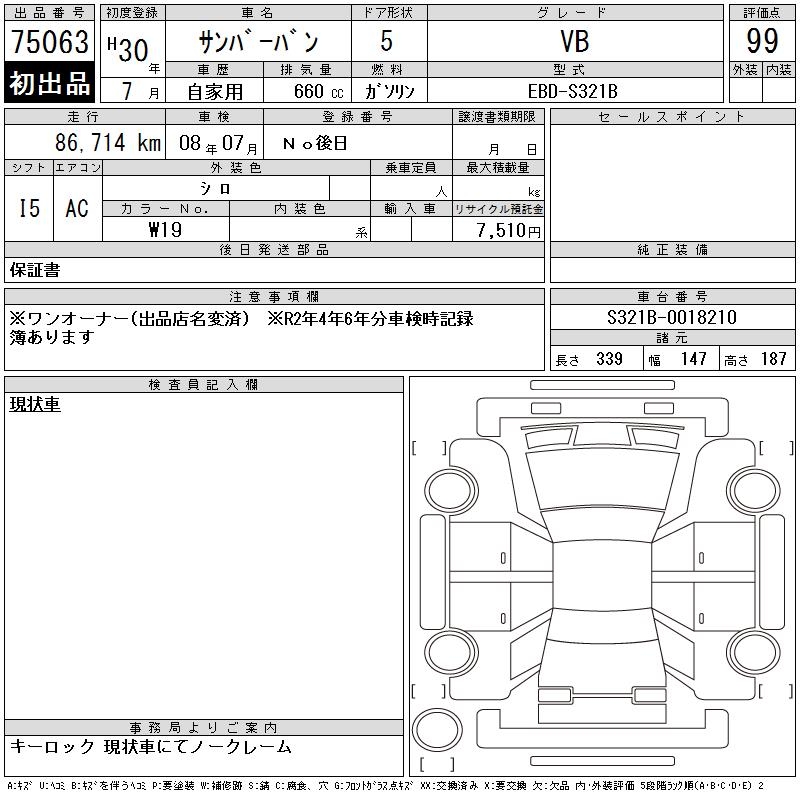 SUBARU SAMBAR VAN VB - лот 75063