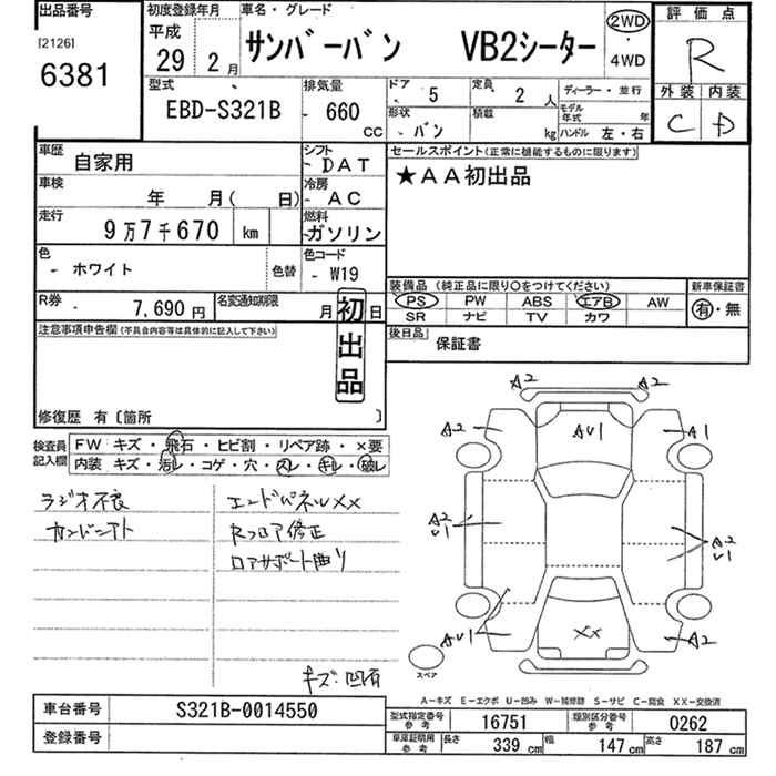 SUBARU SAMBAR VAN VB2 -SEATER - лот 6381