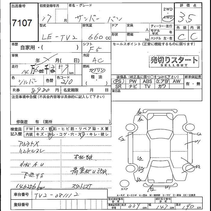 SUBARU SAMBAR VAN 4WD - лот 7107