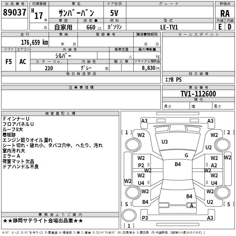 SUBARU SAMBAR VAN - лот 89037