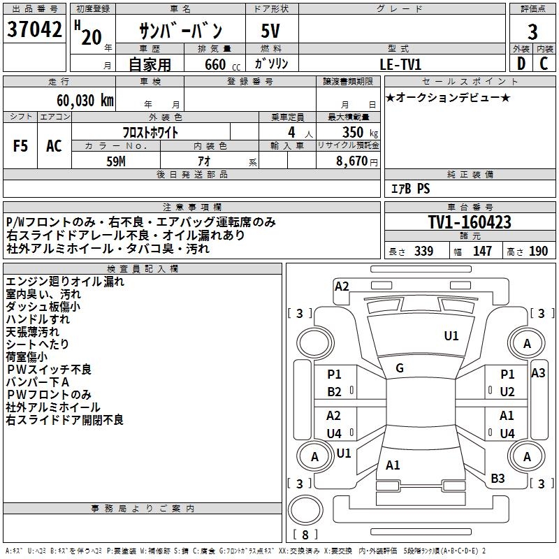 SUBARU SAMBAR VAN - лот 37042