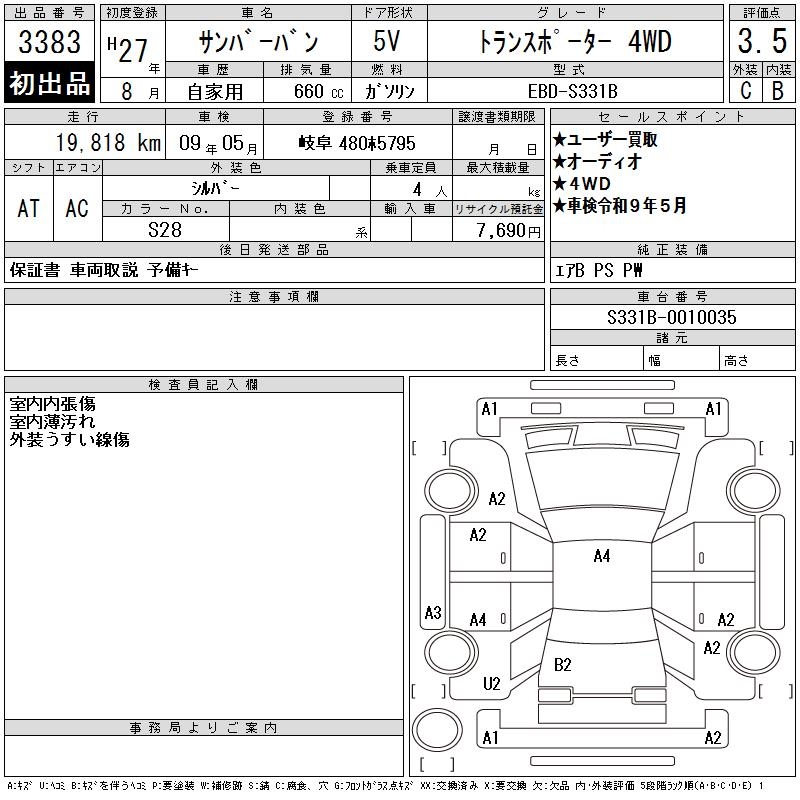 SUBARU SAMBAR VAN TRANSPORTER 4WD - лот 3383