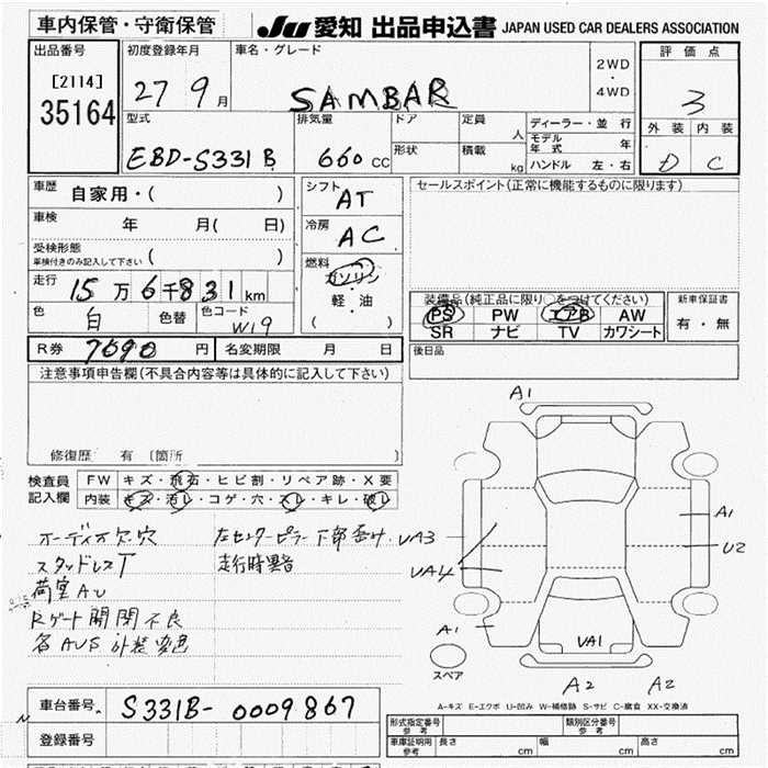 SUBARU SAMBAR VAN - лот 35164