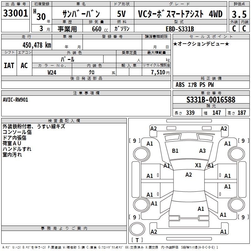 SUBARU SAMBAR VAN VC TURBO SMART ASSIST 4WD - лот 33001