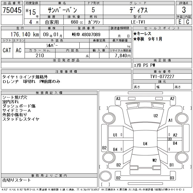 SUBARU SAMBAR VAN DIAS - лот 75045