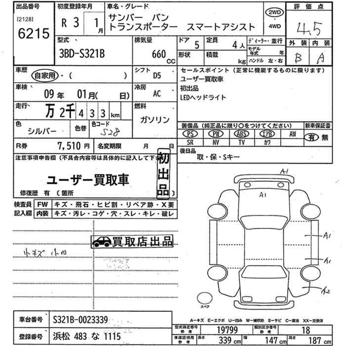 SUBARU SAMBAR VAN TRANSPORTER SMART ASSIST - лот 6215