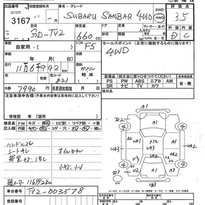 SUBARU SAMBAR VAN 4WD - лот 3167