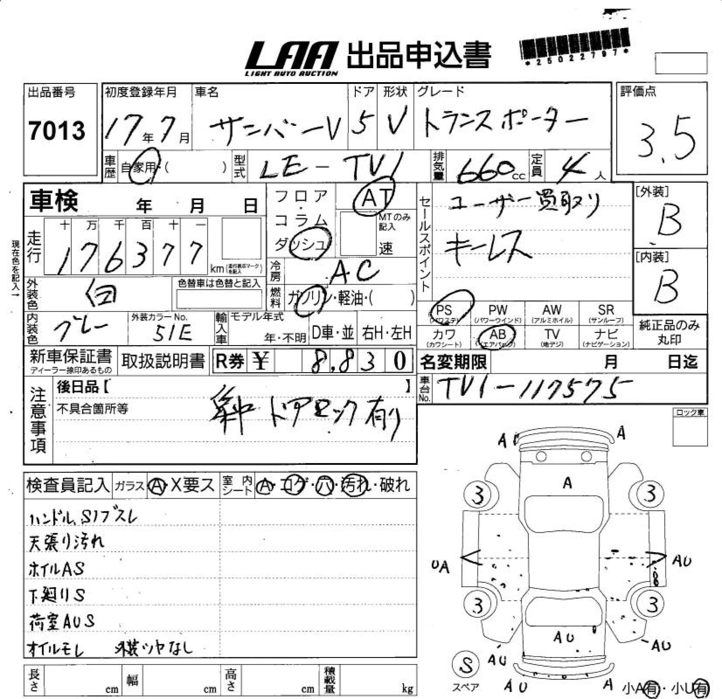 SUBARU SAMBAR VAN TRANSPORTER - лот 7013
