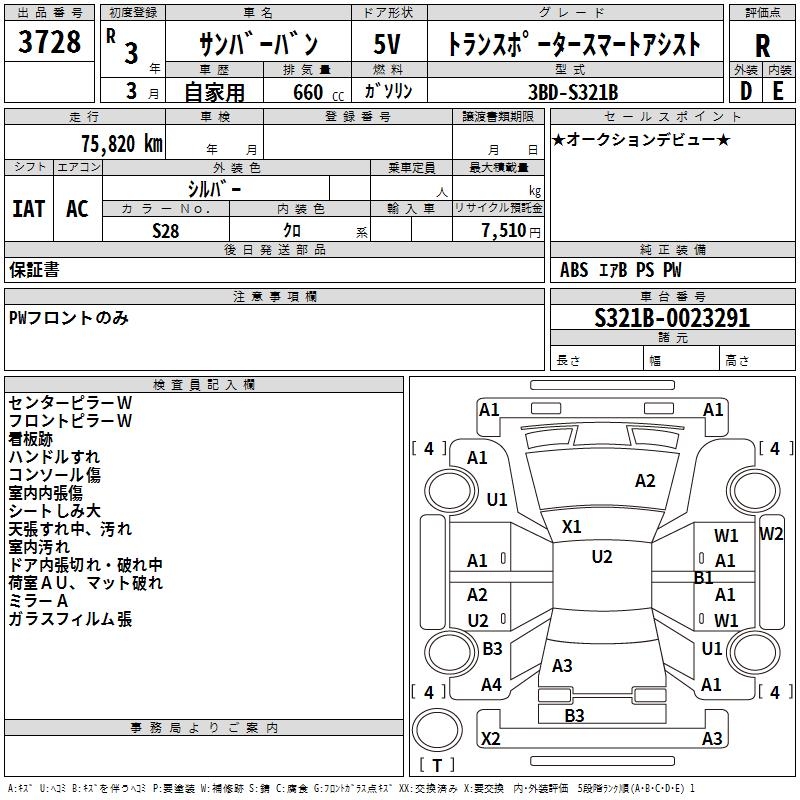 SUBARU SAMBAR VAN TRANSPORTER SMART ASSIST - лот 3728