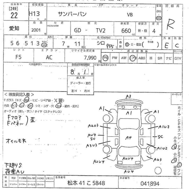 SUBARU SAMBAR VAN VB - лот 22