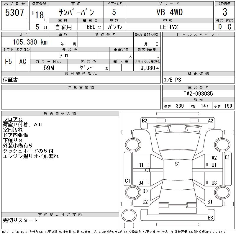 SUBARU SAMBAR VAN VB 4WD - лот 5307