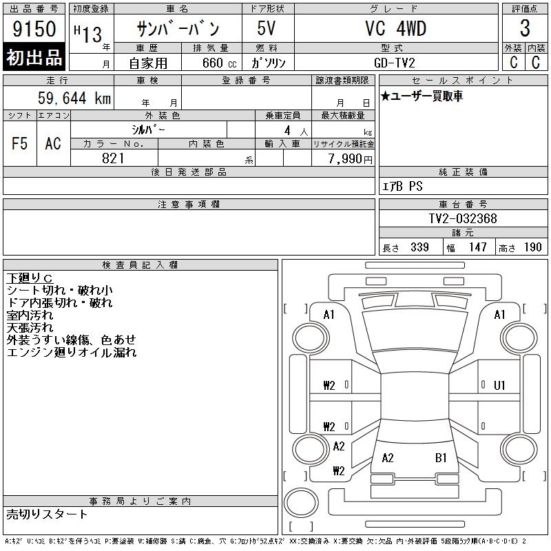 SUBARU SAMBAR VAN VC 4WD - лот 9150