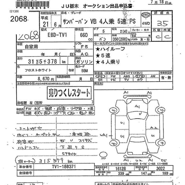SUBARU SAMBAR VAN VB 4 5 PS - лот 2068