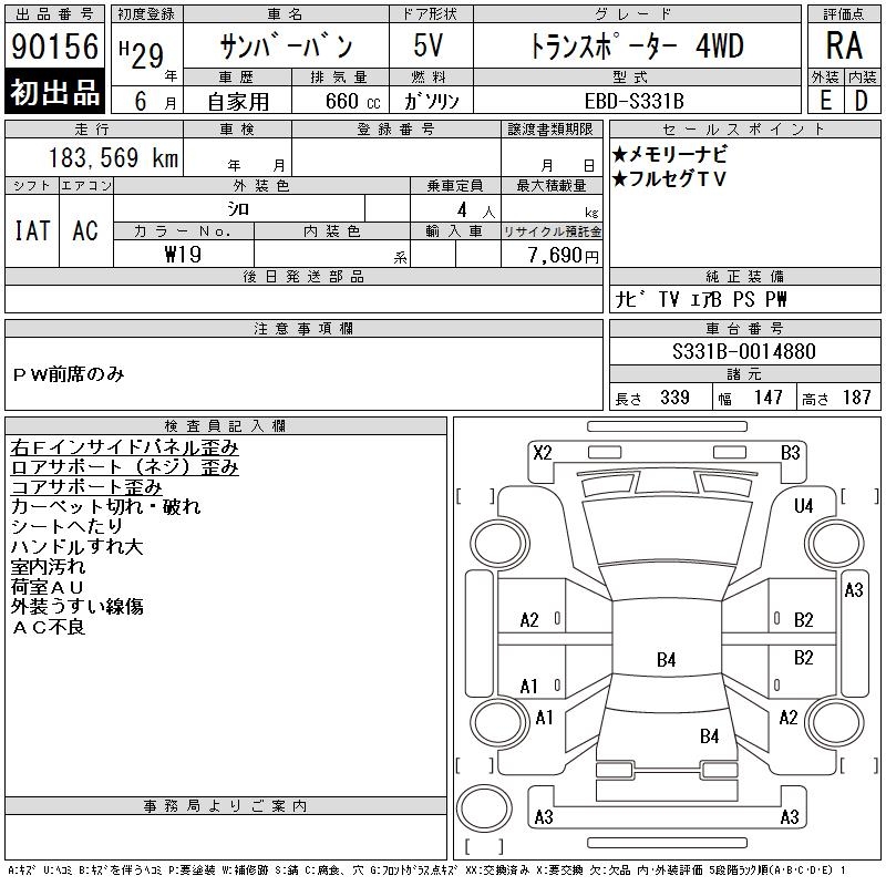 SUBARU SAMBAR VAN TRANSPORTER 4WD - лот 90156