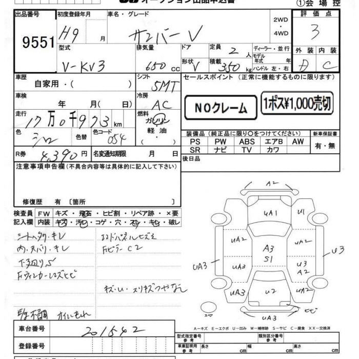 SUBARU SAMBAR VAN - лот 9551