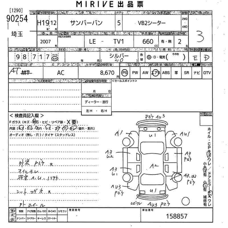 SUBARU SAMBAR VAN VB2 -SEATER - лот 90254