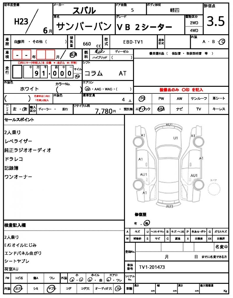 SUBARU SAMBAR VAN - лот 6670
