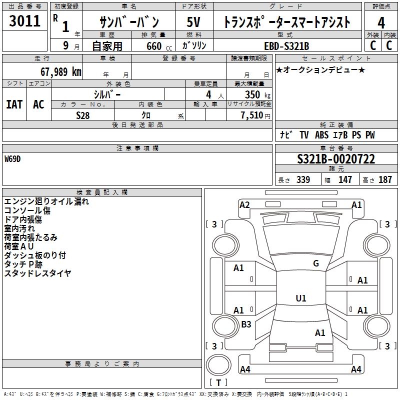 SUBARU SAMBAR VAN TRANSPORTER SMART ASSIST - лот 3011