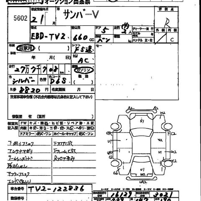 SUBARU SAMBAR VAN - лот 5602