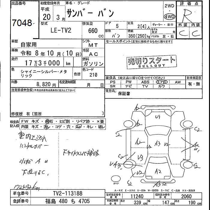 SUBARU SAMBAR VAN 4WD - лот 7048