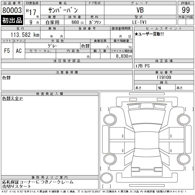 SUBARU SAMBAR VAN VB - лот 80003