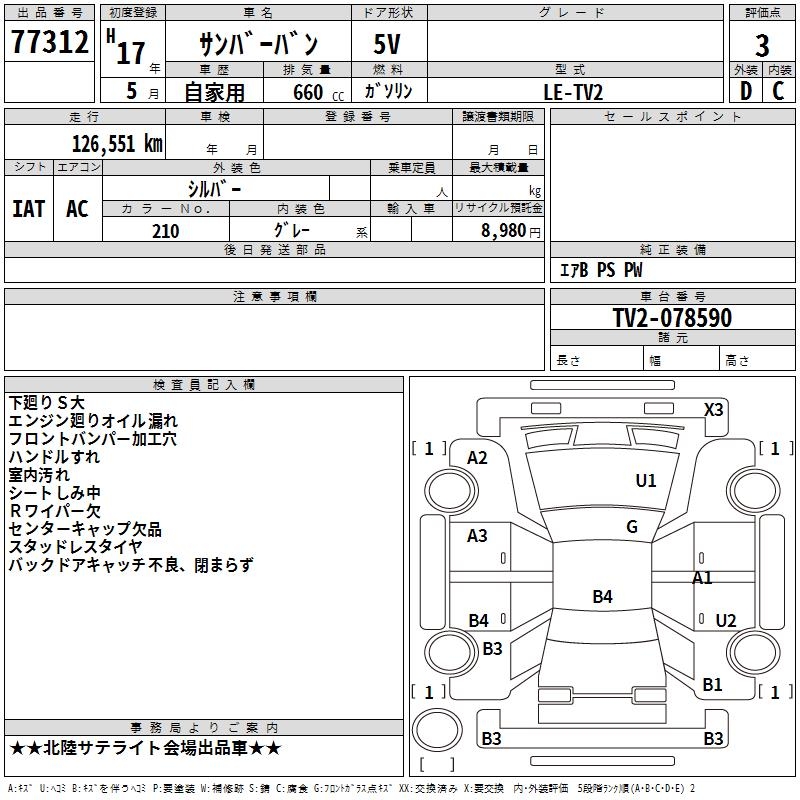SUBARU SAMBAR VAN - лот 77312