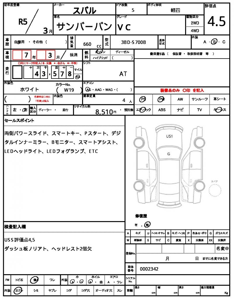 SUBARU SAMBAR VAN - лот 45397