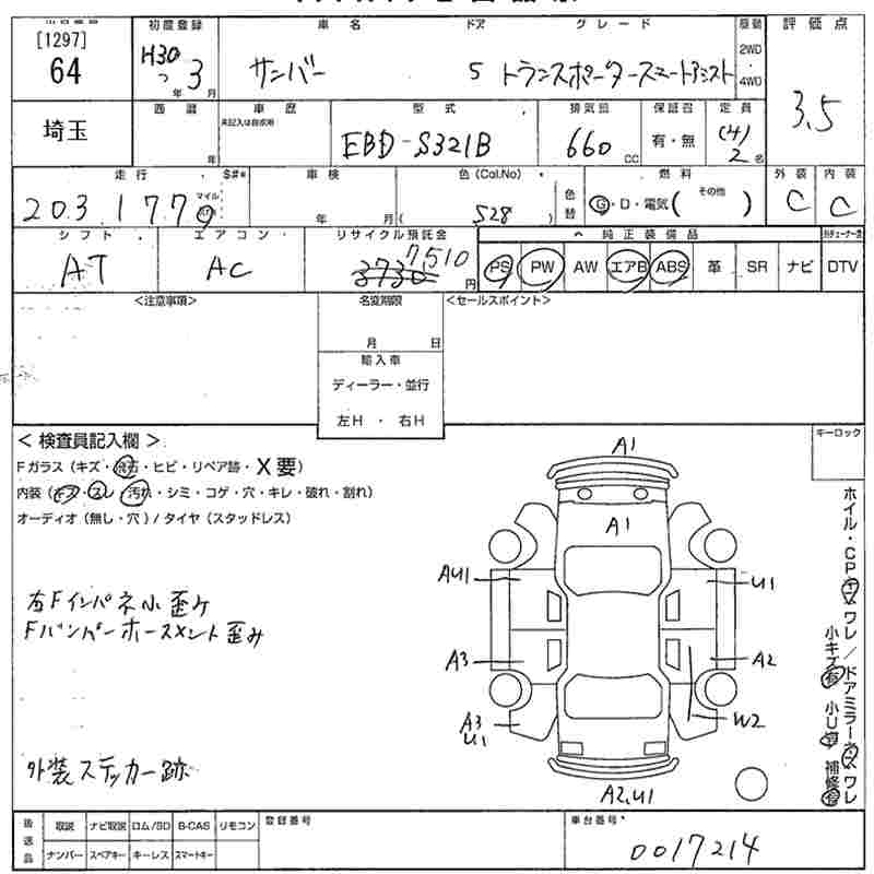 SUBARU SAMBAR VAN TRANSPORTER SMART ASSIST - лот 64