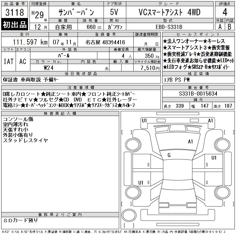 SUBARU SAMBAR VAN VC SMART ASSIST 4WD - лот 3118