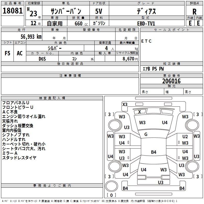 SUBARU SAMBAR VAN Dias - лот 18081