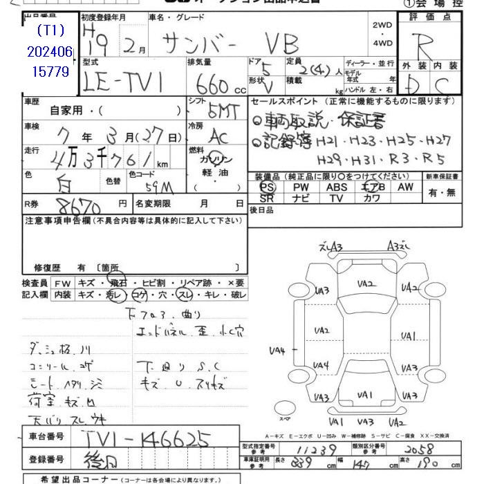 SUBARU SAMBAR VAN - лот 36840